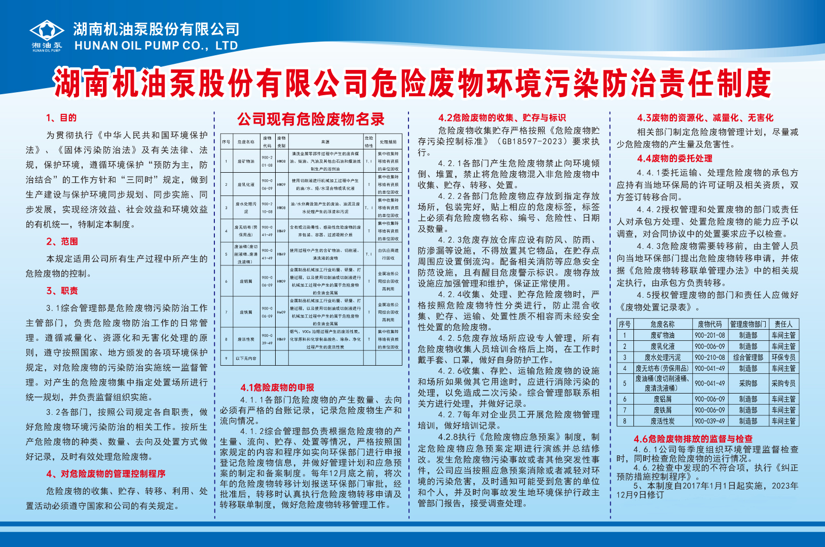 湖南機油泵股份有限公司危險廢物環(huán)境污染防治責任制度 ? 文章來源: ??????作者:hnjyb ?????? 發(fā)布時間: 2024/5/18 13:41:03?瀏覽次數(shù):