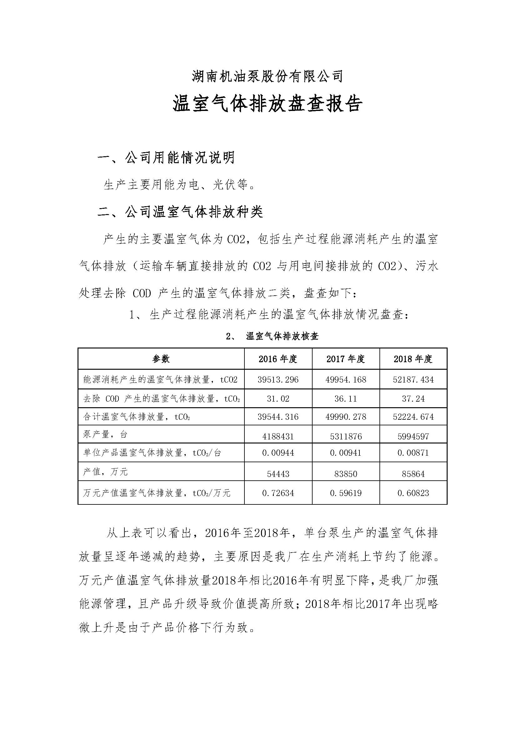 湖南機(jī)油泵股份有限公司 溫室氣體核查報(bào)告